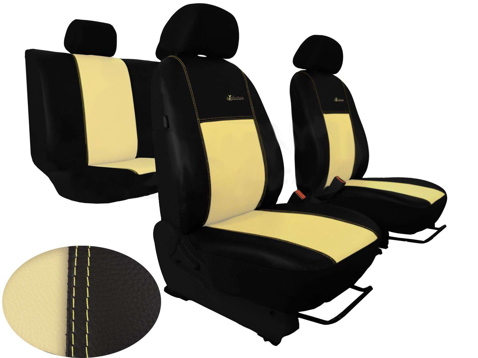 Poťahy sú vyhotovené s dvojitým hrubým šitím, ktoré im dáva jedinečný dizajn a tiež zvyšuje ich odolnosť. Predné poťahy sú ozdobené nápisom EXCLUSIVE ktorý je vytváraný počítačovou technikou.